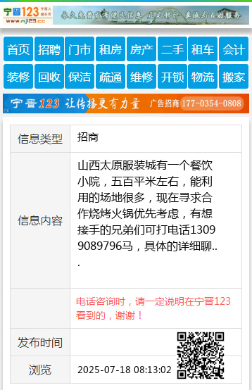 山西太原服装城有一个餐饮小院,五百平米左右,能利用的场地很多,现在寻求合作烧烤火锅优先考虑,有想接手的兄弟们可打电话13099089796马,具体的详细聊