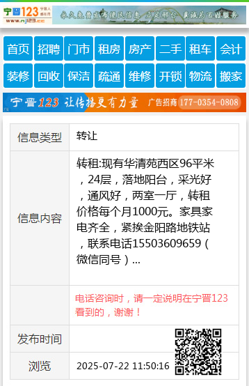转租:现有华清苑西区96平米,24层,落地阳台,采光好,通风好,两室一厅,转租价格每个月1000元。家具家电齐全,紧挨金阳路地铁站,联系电话15503609659(微信同号) 【电话咨询时,请一定说明在太原生活网看到的,谢谢!】 |