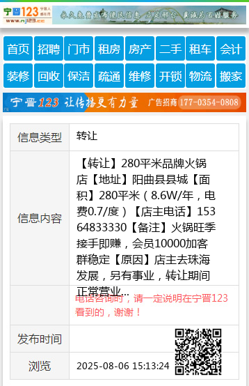 【原因】店主去珠海发展,另有事业,转让期间正常营业。欢迎来店考察。 【电话咨询时,请一定说明在太原生活网看到的,谢谢!】 |