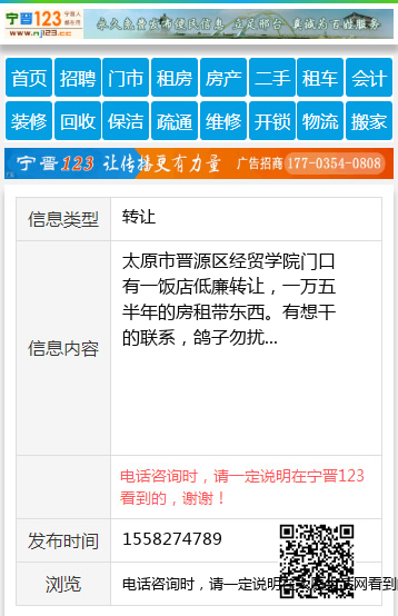 太原市晋源区经贸学院门口有一饭店低廉转让,一万五半年的房租带东西。有想干的联系,鸽子勿扰