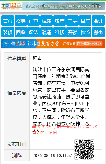 转让|位于许东东润国际南门底商,年租金3.5w。