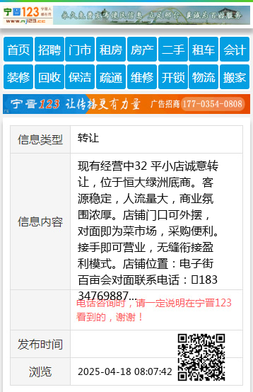 现有经营中32 平小店诚意转让,位于恒大绿洲底商。客源稳定,人流量大,商业氛围浓厚。 店铺门口可外摆,对面即为菜市场,采购便利。接手即可营业,无缝衔接盈利模式。 店铺位置:电子街百亩会对面 联系电话:☎18334769887