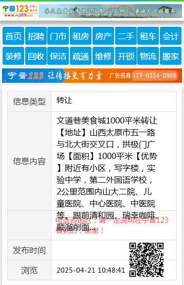 【年租金】15万元,物业费2万元,水电查表,空气能已装好! 【电话咨询时,请一定说明在太原生活网看到的,谢谢!】 |