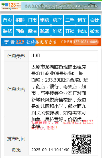 联系人:13007030369 【电话咨询时,请一定说明在太原生活网看到的,谢谢!】 |