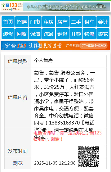 急售,急售 漪汾公园旁,一层,带个小院子,面积56平米,总价25万,大红本满五,小区免费停车,对口外国语小学,家里干净整洁,带家具家电,交通方便,配套齐全。