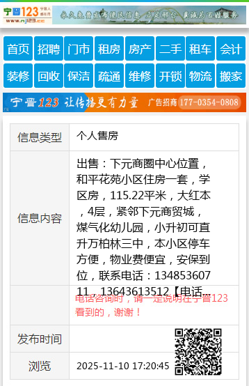 出售:下元商圈中心位置,和平花苑小区住房一套,学区房,115.22平米,大红本,4层,紧邻下元商贸城,煤气化幼儿园,小升初可直升万柏林三中,本小区停车方便,物业费便宜,安保到位,联系电话:13485360711,13643613512 【电话咨询时,请一定说明在太原生活网看到的,谢谢!】 |