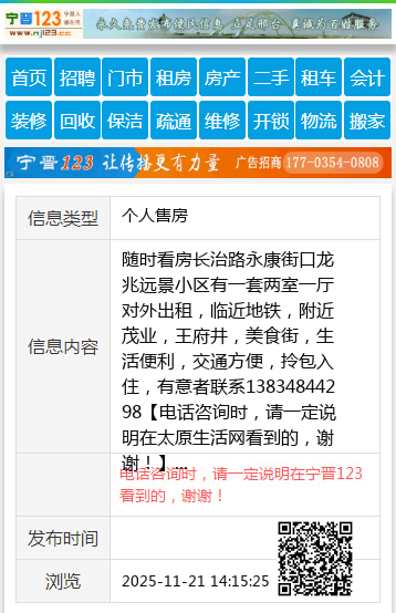 随时看房长治路永康街口龙兆远景小区有一套两室一厅对外出租,临近地铁,附近茂业,王府井,美食街,生活便利,交通方便,拎包入住,有意者联系13834844298 【电话咨询时,请一定说明在太原生活网看到的,谢谢!】 |