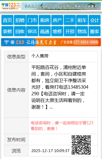 平阳路百花谷,清控附近单间,套间,小区和自建楼房都有,独立厨卫干净整洁采光好,看房打电话13485304290 【电话咨询时,请一定说明在太原生活网看到的,谢谢!】 |