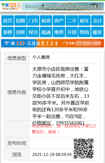 另外靠近学府街的还有120多平米和90多平米一起出售,均在9层,价格面议,19935565961 【电话咨询时,请一定说明在太原生活网看到的,谢谢!】 |