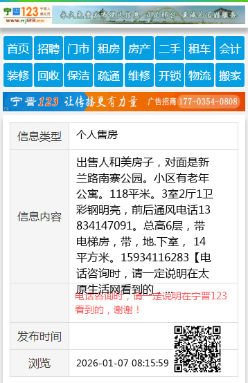出售人和美房子,对面是新兰路南寨公园。小区有老年公寓。118平米。3室2厅1卫彩钢明亮,前后通风电话13834147091。