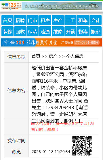 超低价出售一套金桥郡房屋 ,紧邻汾河公园,滨河东路