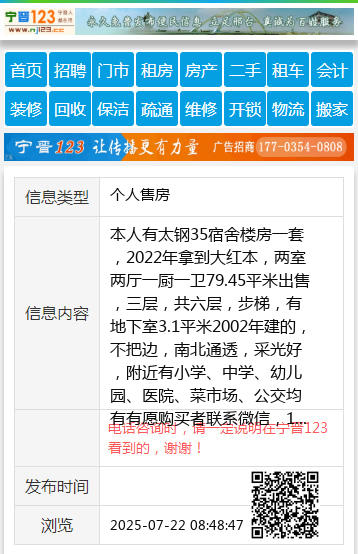 本人有太钢35宿舍楼房一套,2022年拿到大红本,两室两厅一厨一卫79.45平米出售,三层,共六层,步梯,有地下室3.1平米