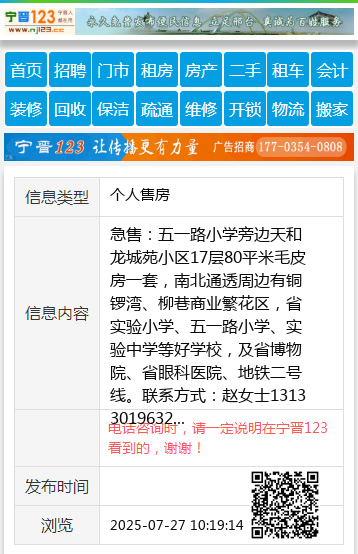 急售:五一路小学旁边天和龙城苑小区17层80平米毛皮房一套,南北通透 周边有铜锣湾、柳巷商业繁花区,省实验小学、五一路小学、实验中学等好学校,及省博物院、省眼科医院、地铁二号线。 联系方式:赵女士13133019632
