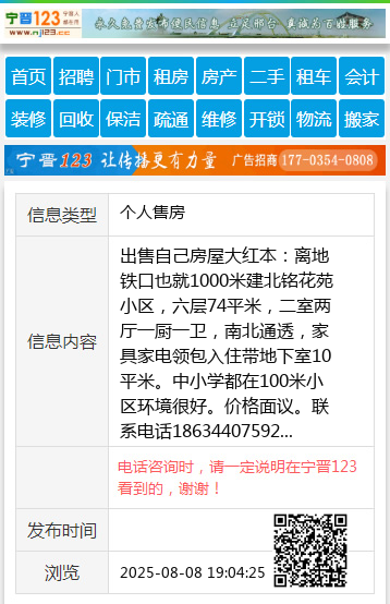 出售自己房屋大红本:离地铁口也就1000米建北铭花苑小区,六层74平米,二室两厅一厨一卫,南北通透,家具家电领包入住