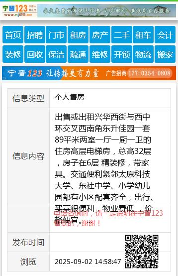 出售或出租兴华西街与西中环交叉西南角东升佳园一套89平米两室一厅一厨一卫的住房