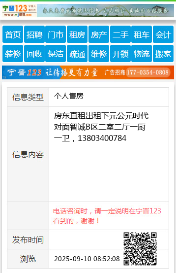 房东直租出租下元公元时代对面智诚B区二室二厅一厨一卫,13803400784