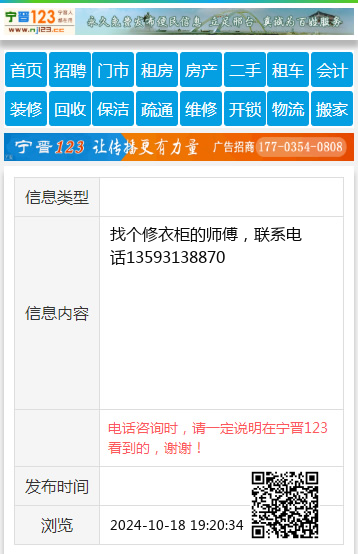 找个修衣柜的师傅,联系电话13593138870