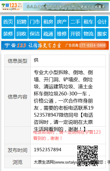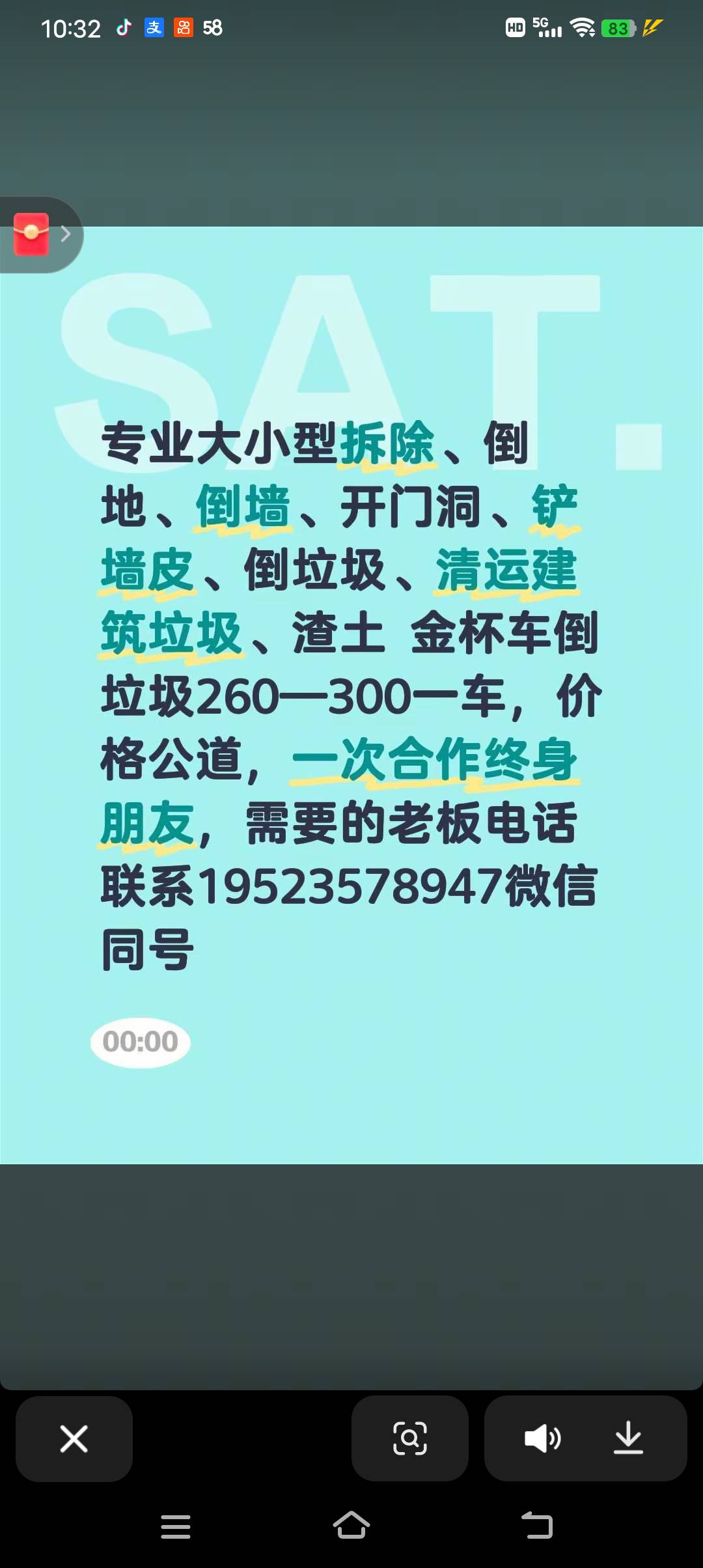 专业大小型拆除、倒地、倒墙、开门洞、铲墙皮、倒垃圾、清运建筑垃圾、渣土金杯车倒垃圾260-300一车,价格公道,一次合作终身朋友,需要的老板电话联系19523578947微信同号