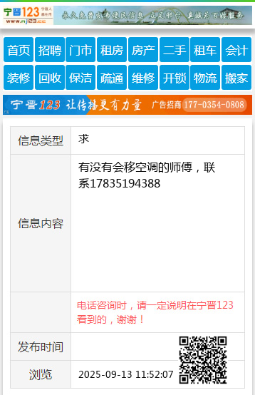 求空调师傅:北美N1附近 空调需要移机,5层日期随时都行,只拆不装,微信zise05060 备注来意