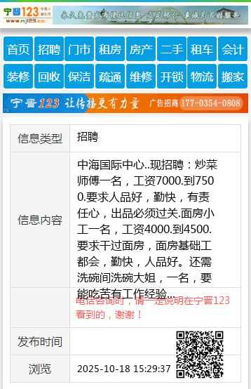 还需洗碗间洗碗大姐,一名,要能吃苦有工作经验,干净,利索者,工资3500,年龄55岁之内.