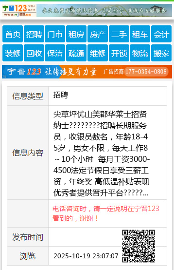 招聘长期服务员,收银员数名,