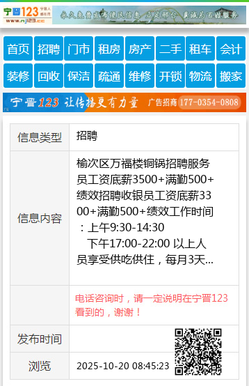 | 防骗提醒: | 太原生活网(www.sxtaiyuan.net)提醒您:手工活、网络兼职、刷单,都是骗子!凡以各种名义收取费用的都是骗子!找工作是往兜里挣钱,让你往外掏钱的都是骗子!异地招聘请提高警惕,谨防诈骗! |
