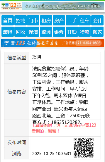 法院食堂招聘保洁员,年龄50到55之间,服务意识强,干活利索,工作勤恳,服从安排。