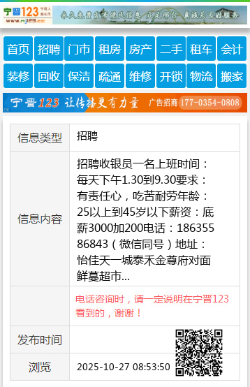 | 防骗提醒: | 太原生活网(www.sxtaiyuan.net)提醒您:手工活、网络兼职、刷单,都是骗子!凡以各种名义收取费用的都是骗子!找工作是往兜里挣钱,让你往外掏钱的都是骗子!异地招聘请提高警惕,谨防诈骗! |