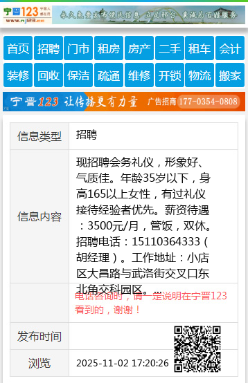 现招聘会务礼仪,形象好、气质佳。年龄35岁以下,身高165以上女性,有过礼仪接待经验者优先。薪资待遇:3500元/月,管饭,双休。招聘电话:15110364333(胡经理)。工作地址:小店区大昌路与武洛街交叉口东北角交科园区。 【电话咨询时,请一定说明在太原生活网看到的,谢谢!】 |