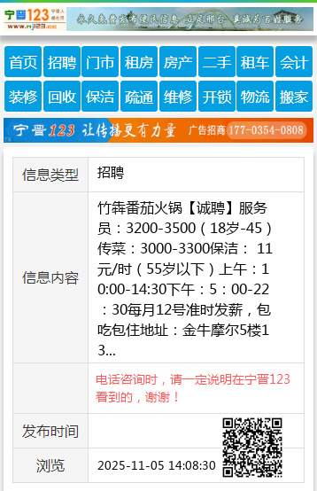 服务员:3200-3500(18岁-45)