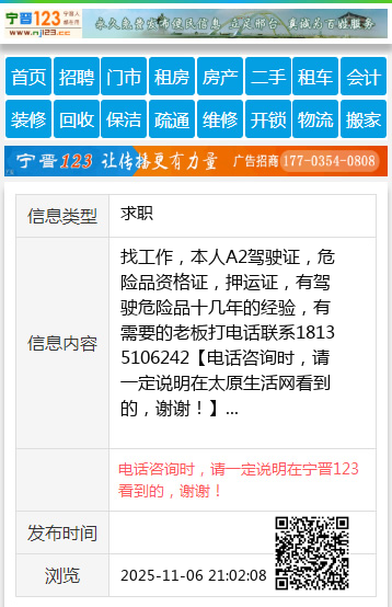 找工作,本人A2驾驶证,危险品资格证,押运证,有驾驶危险品十几年的经验,有需要的老板打电话联系18135106242 【电话咨询时,请一定说明在太原生活网看到的,谢谢!】 |