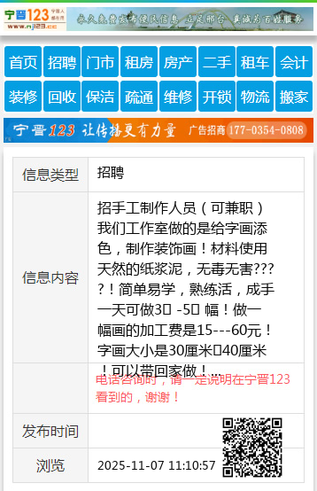招手工制作人员(可兼职)