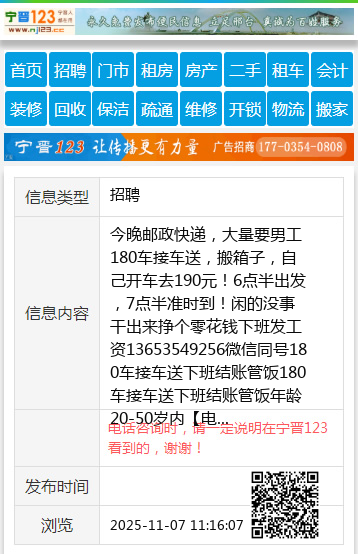 今晚邮政快递,大量要男工180车接车送,搬箱子,自己开车去190元!6点半出发,7点半准时到!闲的没事干出来挣个零花钱下班发工资