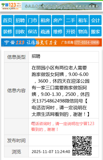在迎泽公园有一家三口需要跑家做饭阿姨,9.00-1.30,2500,休四天