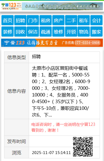 太原市小店区晋阳街中餐诚聘: