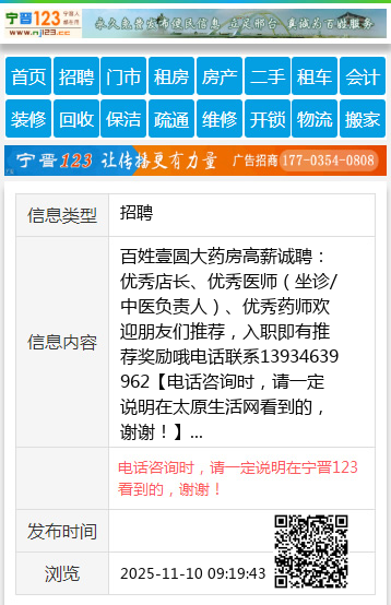 | 防骗提醒: | 太原生活网(www.sxtaiyuan.net)提醒您:手工活、网络兼职、刷单,都是骗子!凡以各种名义收取费用的都是骗子!找工作是往兜里挣钱,让你往外掏钱的都是骗子!异地招聘请提高警惕,谨防诈骗! |