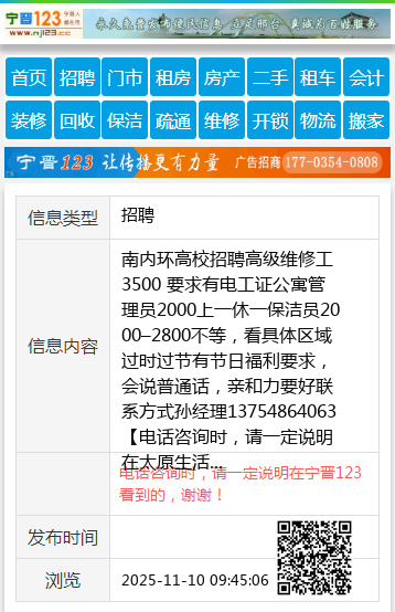 | 防骗提醒: | 太原生活网(www.sxtaiyuan.net)提醒您:手工活、网络兼职、刷单,都是骗子!凡以各种名义收取费用的都是骗子!找工作是往兜里挣钱,让你往外掏钱的都是骗子!异地招聘请提高警惕,谨防诈骗! |