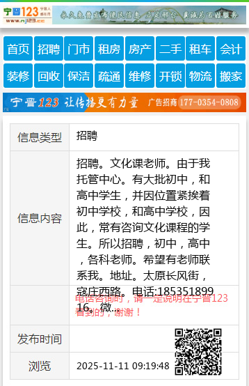 由于我托管中心。有大批初中,和高中学生,并因位置紧挨着初中学校,和高中学校,因此,常有咨询文化课程的学生。所以招聘,初中,高中,各科老师。希望有老师联系我。
