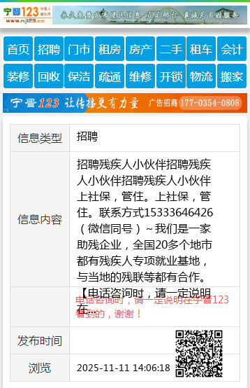 我们是一家助残企业,全国20多个地市都有残疾人专项就业基地,与当地的残联等都有合作。 【电话咨询时,请一定说明在太原生活网看到的,谢谢!】 |