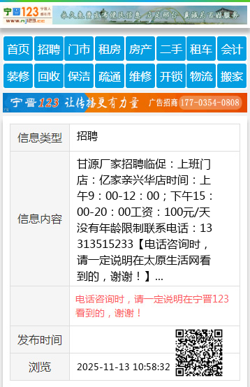 甘源厂家招聘临促: