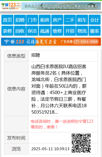 招客房服务员2名(具体位置,龙城北街,白求恩医院西门对面)年龄在50以内的,