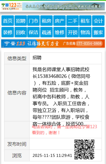我是名师课堂人事招聘武校长15383468026(微信同号),有五险,底薪+奖金