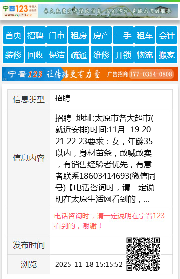 招聘 地址:太原市各大超市(就近安排)