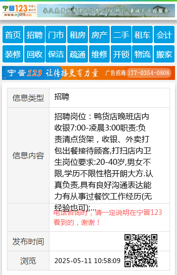 招聘岗位:鸭货店晚班店内收银7:00-凌晨3:00