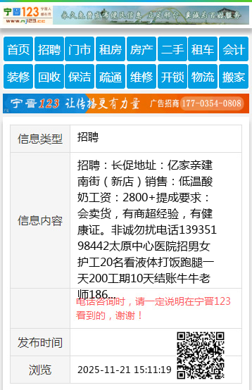 | 防骗提醒: | 太原生活网(www.sxtaiyuan.net)提醒您:手工活、网络兼职、刷单,都是骗子!凡以各种名义收取费用的都是骗子!找工作是往兜里挣钱,让你往外掏钱的都是骗子!异地招聘请提高警惕,谨防诈骗! |