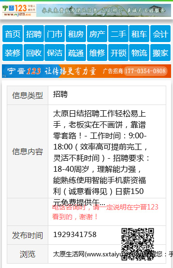 | 防骗提醒: | 太原生活网(www.sxtaiyuan.net)提醒您:手工活、网络兼职、刷单,都是骗子!凡以各种名义收取费用的都是骗子!找工作是往兜里挣钱,让你往外掏钱的都是骗子!异地招聘请提高警惕,谨防诈骗! |