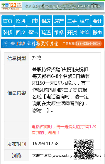 太原生活网(www.sxtaiyuan.net)提醒您:手工活、网络兼职、刷单,都是骗子!凡以各种名义收取费用的都是骗子!找工作是往兜里挣钱,让你往外掏钱的都是骗子!异地招聘请提高警惕,谨防诈骗!