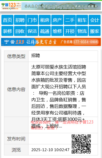 太原可丽爱水族生活馆招聘简章本公司主要经营大中型水族箱的批发及零售,因店面扩大