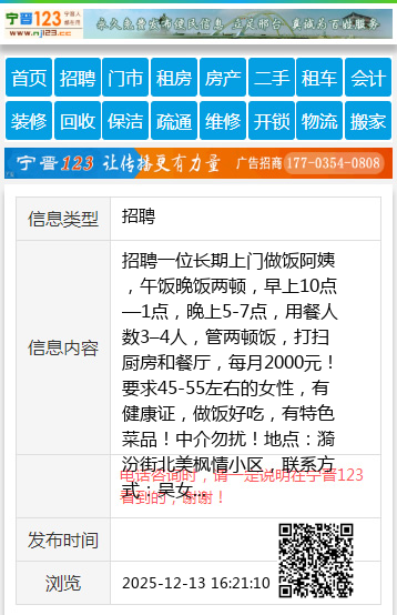 招聘一位长期上门做饭阿姨,午饭晚饭两顿,早上10点—1点,晚上5-7点,用餐人数3–4人,管两顿饭,打扫厨房和餐厅,每月2000元!要求45-55左右的女性,有健康证,做饭好吃,有特色菜品!中介勿扰!地点:漪汾街北美枫情小区,联系方式:吴女士15834108044 【电话咨询时,请一定说明在太原生活网看到的,谢谢!】 |