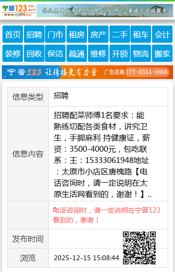 招聘配菜师傅1名
